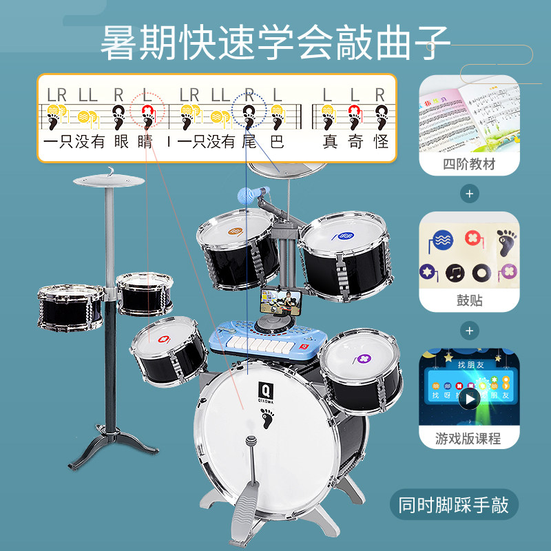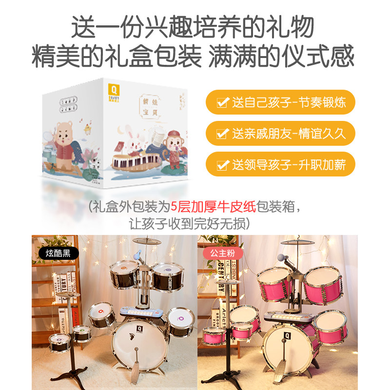 (gift for girls) 5 drums, 1 cymbal, pink drum set, fun DJ piano, gift box packaging (gift for boys), 5 drums, 1 cymbal, black drum set, fun DJ piano, gift box packaging (gift for girls)