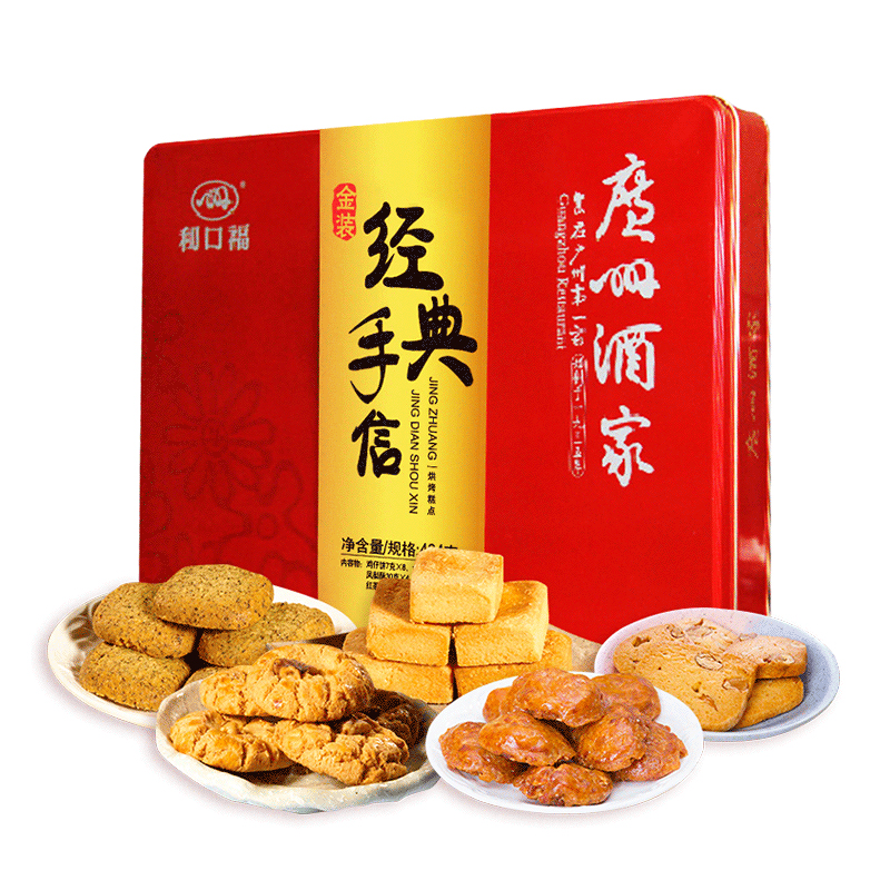 Guangzhou Wine Family Likou Fu Gold Dress Classic Hand Letter Refreshment Year Goods Crisp Cake Gift Box for Chinese New Year delivery letter 424g