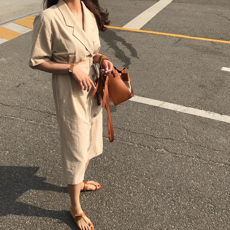 2023 summer French style retro tenor linen suit with dress Korean light ripened lace small crowdsourced short sleeve long dress
