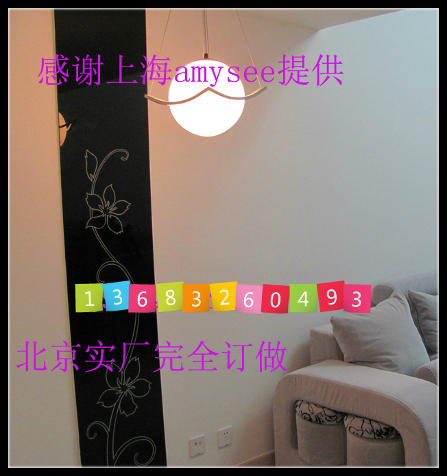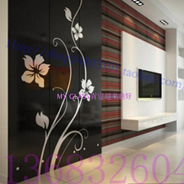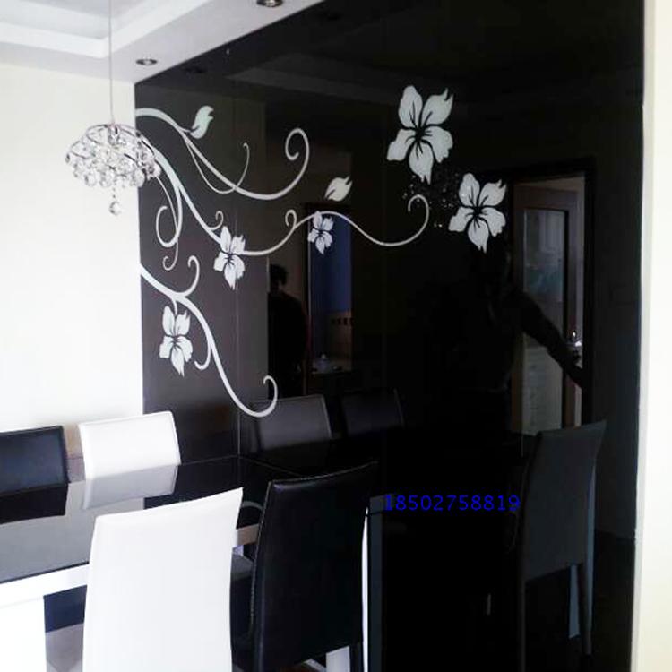 Custom-made art glass back paint baking paint tempered background wall desktop suspended ceiling invisible cabinet door black bottom white flower happy twist