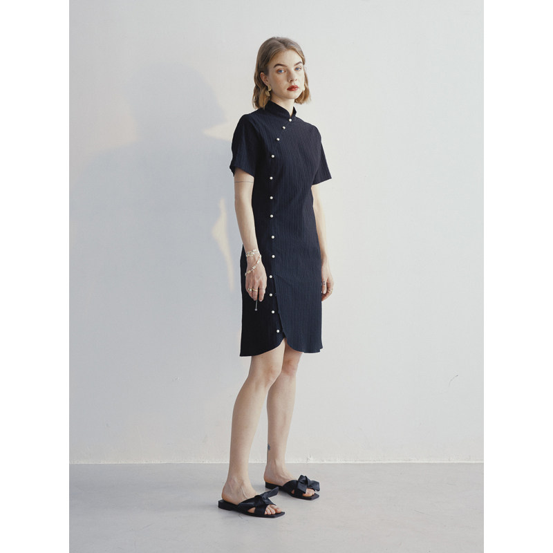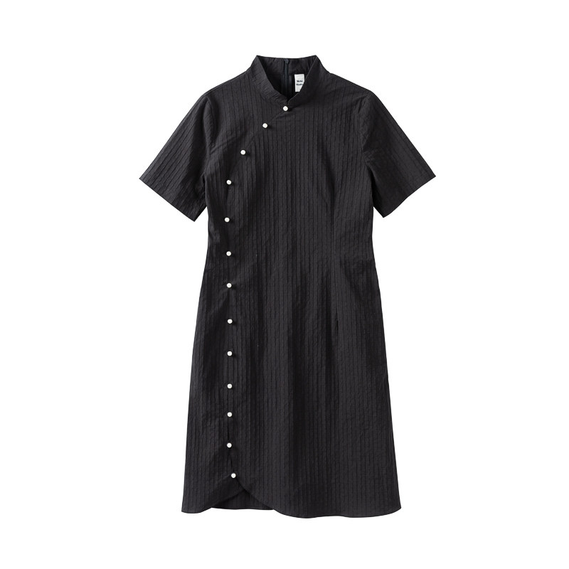Slow tea black striped musculature with improved short foreign dress design feeling small crowdsummer elastic high waist short skirt