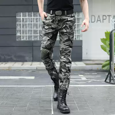Outdoor sports camouflage casual pants men's elastic slim straight tube multi-pocket military green overalls mountaineering tactical pants