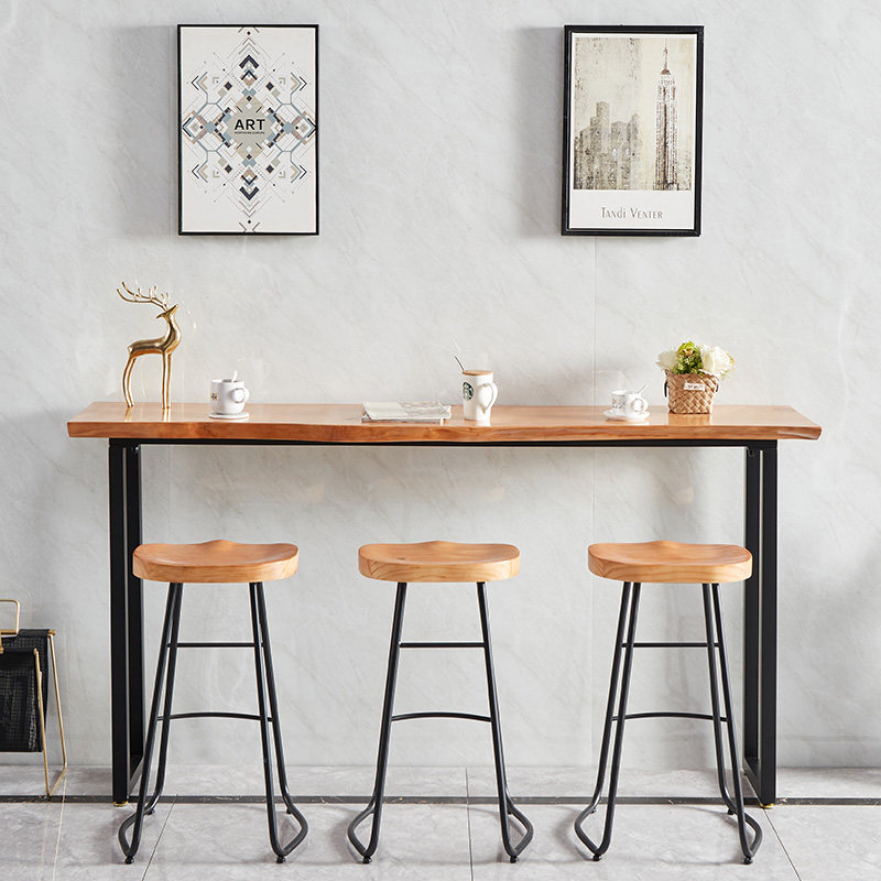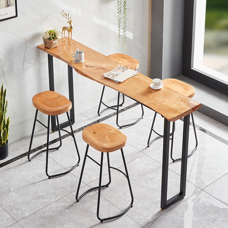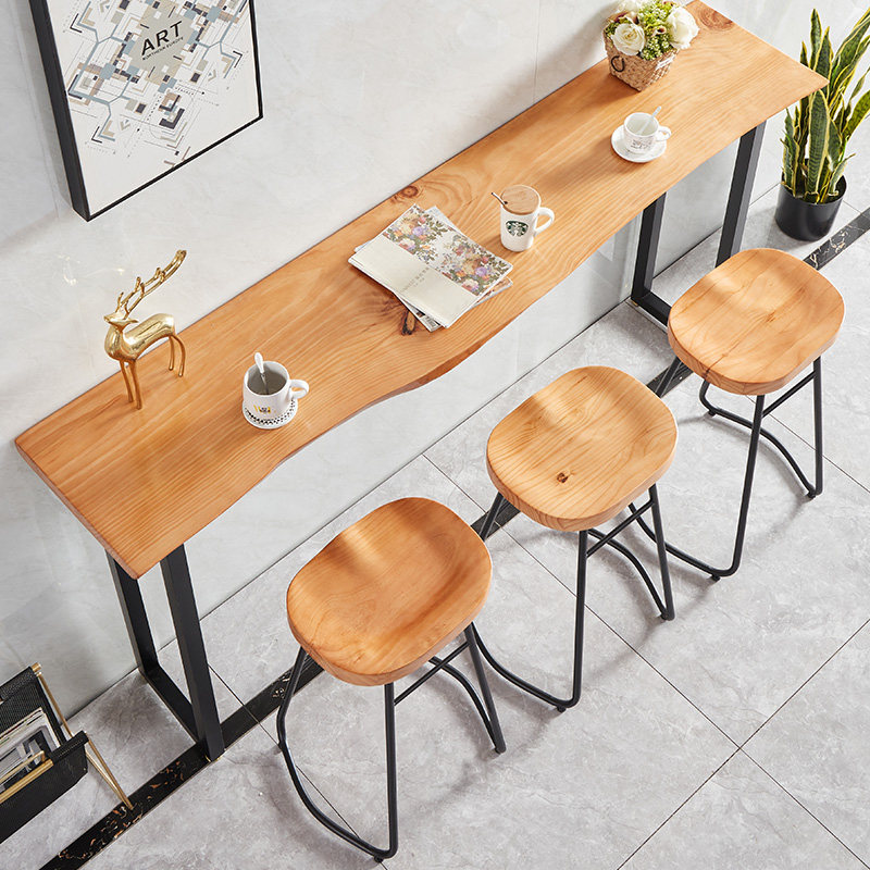 Solid Wood Bar Table Milk Tea Shop Bar Café home Balcony Leaning Against Wall Window Casual Strip High Foot Table And Chairs Combination