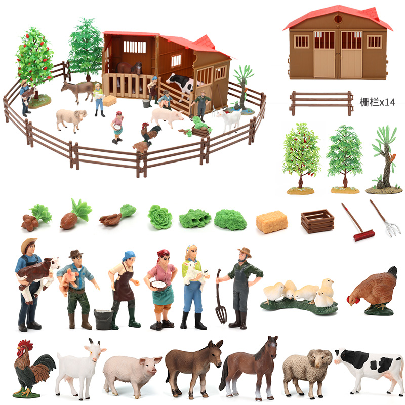 Simulation Ranch Farm Toy Model Suit Swing character Man Puppet house farmer Plastic fence Children gift