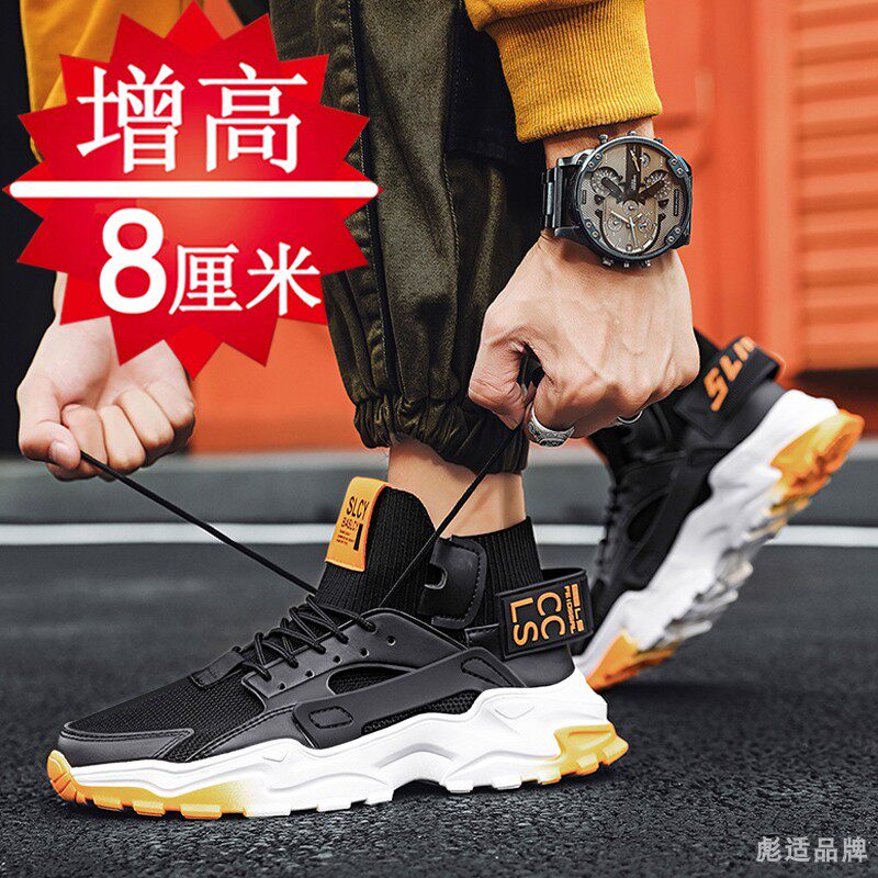 Men's heightening shoes in winter 8cm breathable mesh sneakers men's heightening shoes flying woven casual shoes heightening board shoes