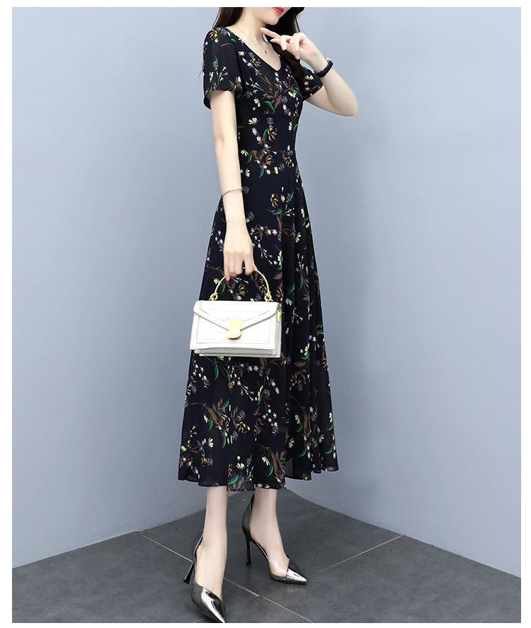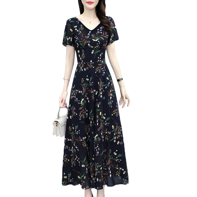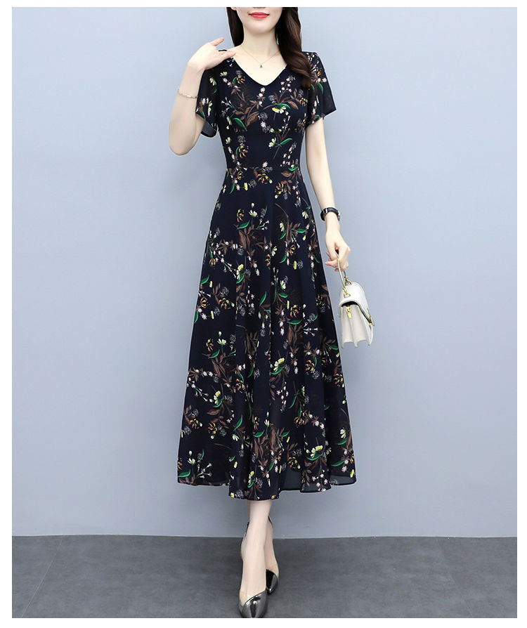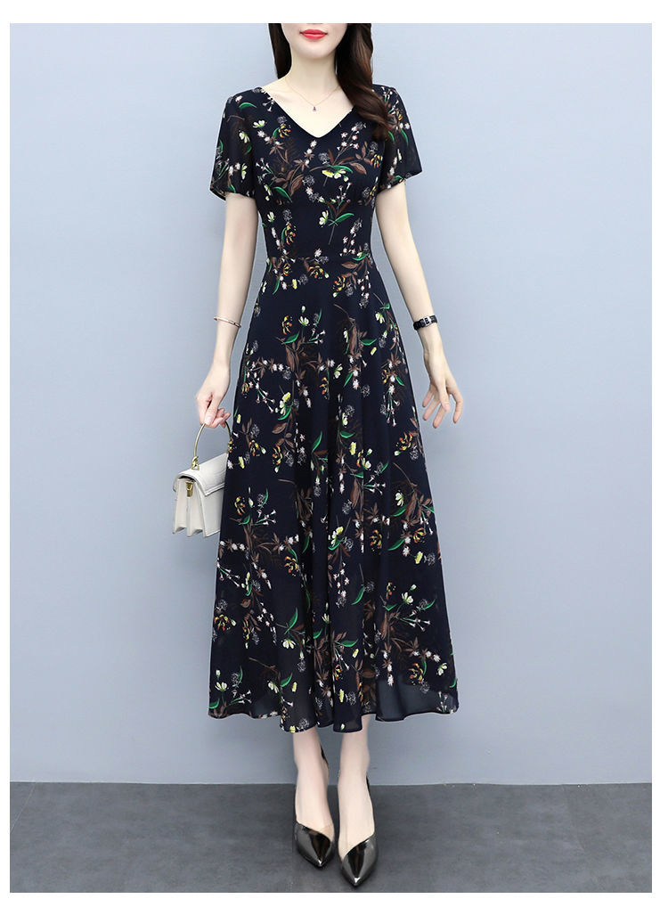 2022 new floral chiffon dress high-end 40-50 year old female middle-aged summer dress mother temperament skirt summer
