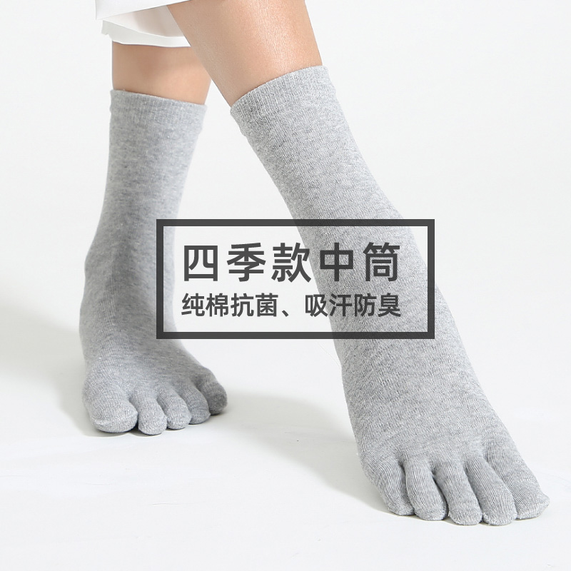 Lansha 2022 spring and autumn five finger socks women pure cotton middle barrel sweat-absorbing anti-odor split toe socks thick toe socks children autumn and winter