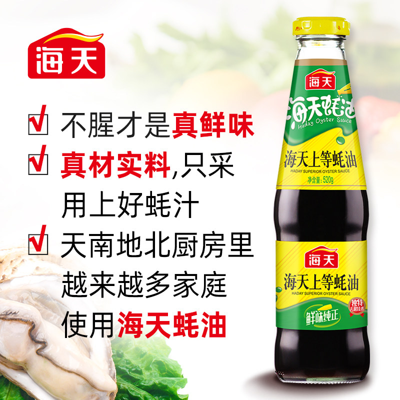 Haitiantian Oyster sauce 520g*2 bottles Oil-consuming barbecue cooking hot pot dip mixed trap stir-fry mixed noodles condiment