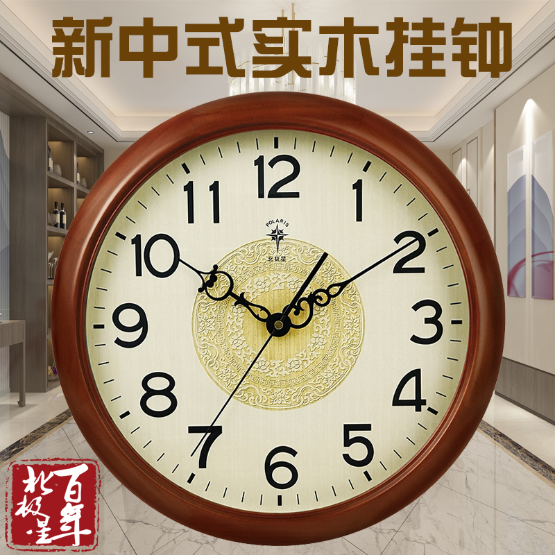 Polaris solid wood mute wall clock Chinese modern simple clock European creative living room clock quartz clock wood clock