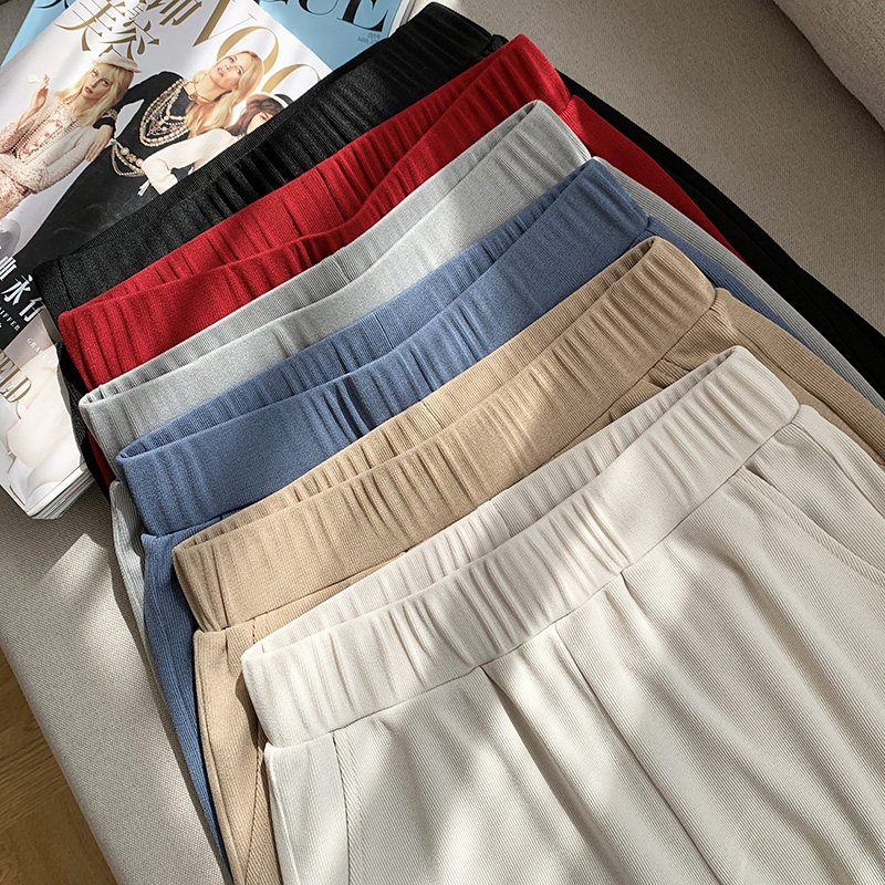 High Waist Pituitary Ice Silk Casual Wide Pants Woman 2022 Summer new Fashion straight cylinder Lean Knit Tug Pants