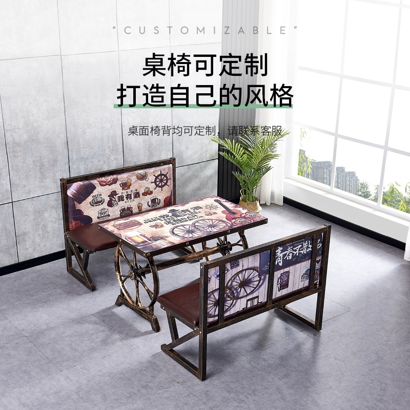 Customized wine, bar, coffee, western restaurant, barbecue hot pot shop, milk tea restaurant, industrial style card seat, sofa, table and chair combination