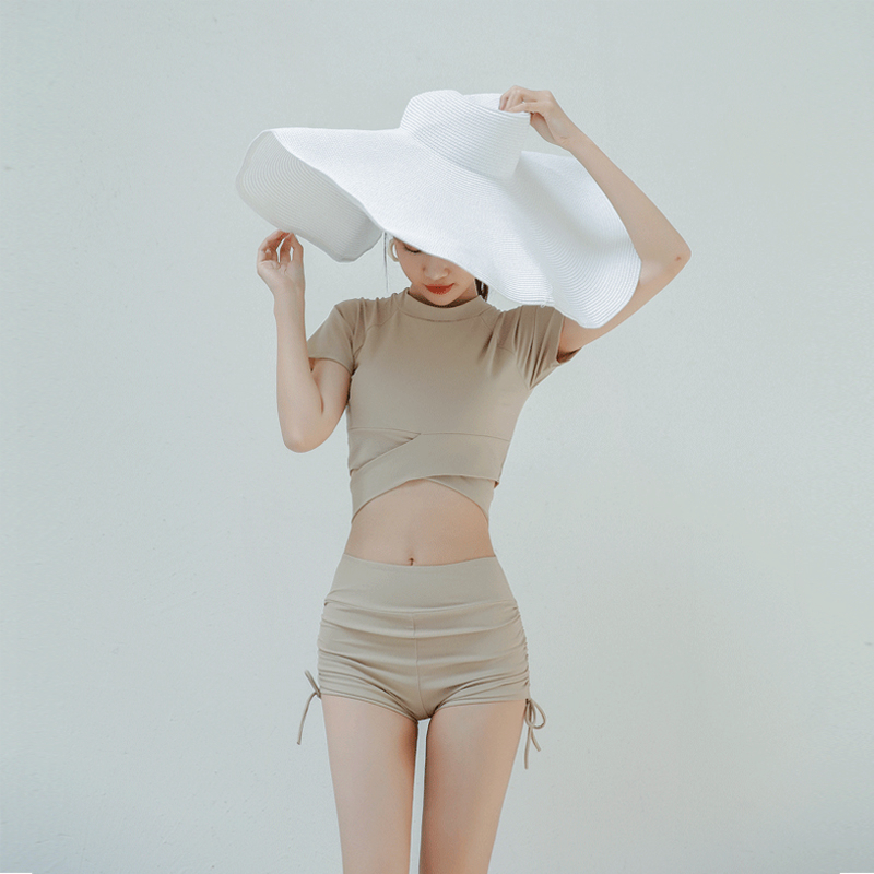 Swimsuit female summer conservative 2021 new split boxer pants high waist belly thin chest gathering ladies swimsuit