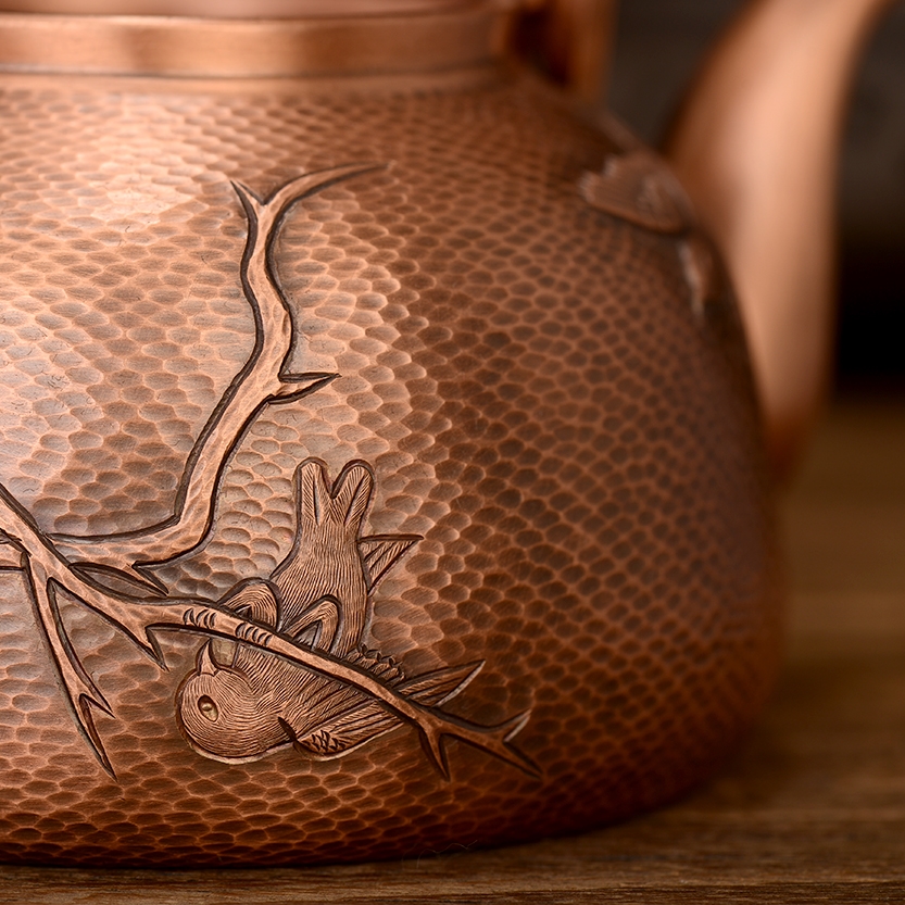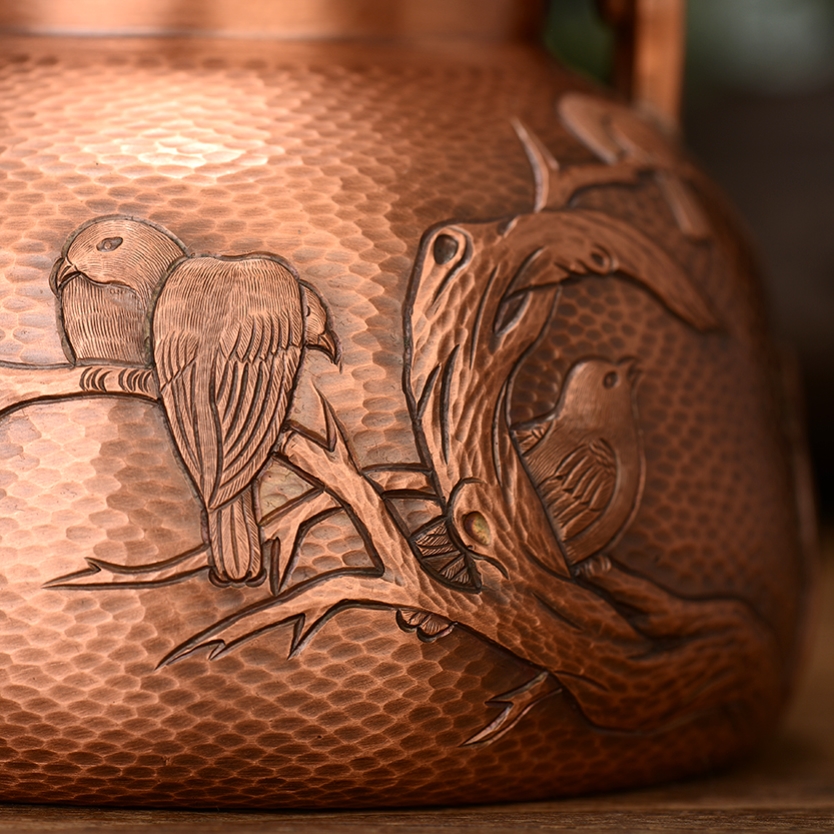 Master Meng Deren hand-engraved The Joy Copper Pot Copper Tea Boiling Vessel Chinese Kettle Antique Teapot Bridge Pot
