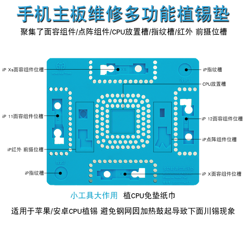 Mobile phone Main board Repair chip CPU steel mesh Sig pad infrared laser surface accommodating IC high temperature multifunction silicone mat