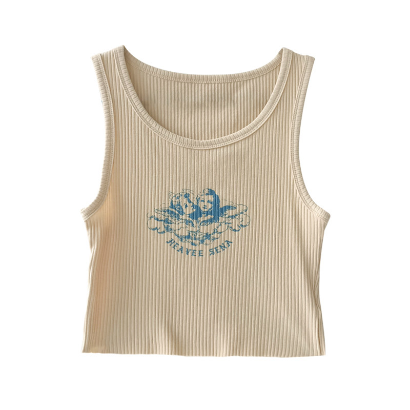 Whispering pure desire angel print vest women's spring short cropped navel sleeveless small suspenders high waist thin bottoming top