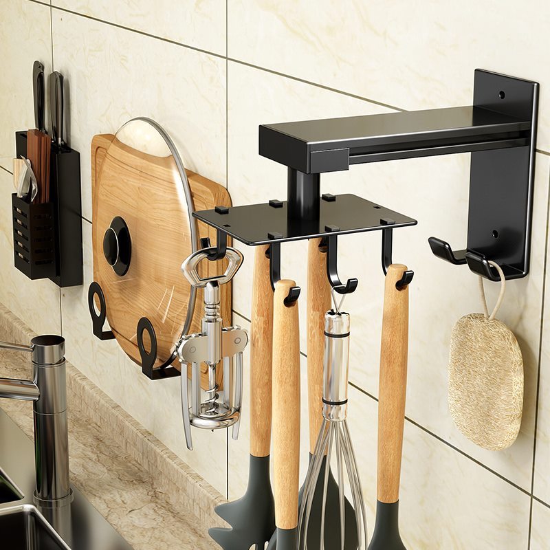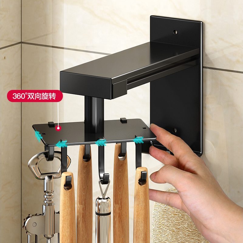 Rotating six-paws hook-free kitchen pan Scoop Spoon Wall Containing shelf wall Wall-mounted Folding Hexagon