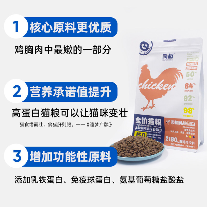 Small willing uncle Jane uncles J50 83% Fresh chicken 50% Protein Whole Fresh Meat Domestic Cat Food High-end Imported Flat Substitute-Taobao