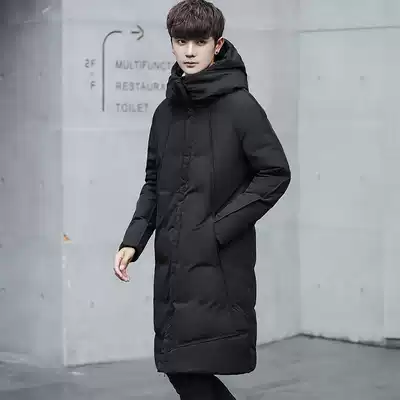 Anti-season down jacket men's medium and long version of the coat teen student trend handsome slim-fitting over-the-knee warm jacket winter