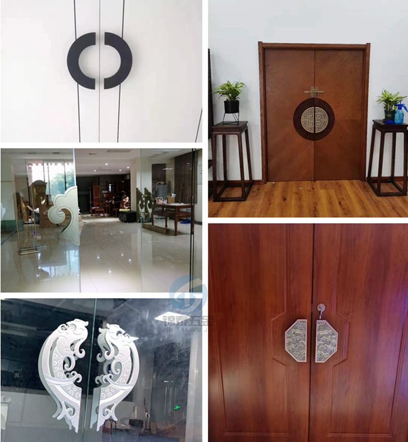 New Chinese semi-circular wooden door glass door handle semi-circle large door handle double door pair with armrests ancient bronze engraving