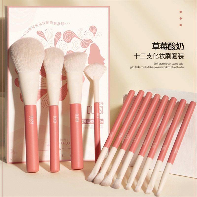 Thick Love Cocoa 12 Makeup Brush Sets Pack of Brush Bag Cherry Blossom Jade Dew 12 Makeup Brush Set Group Send Brush Bag Fog early morning 12 Makeup Brush Sets Group Send a Brushed Package