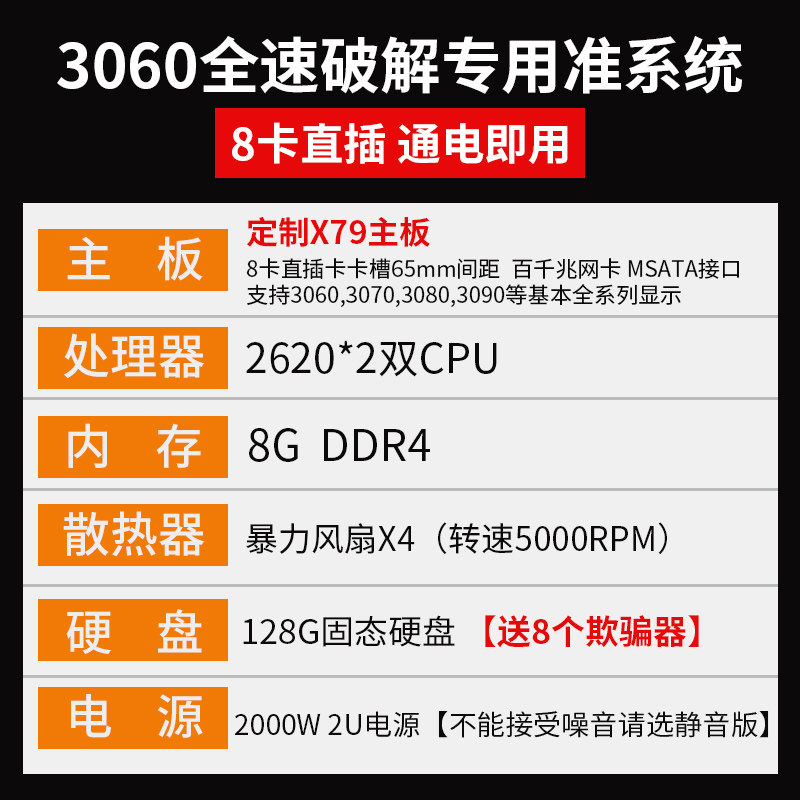 (Activity special shot silent version) 3060 full speed 8 card platform 8G 128G special quasi-system 2000W power supply
