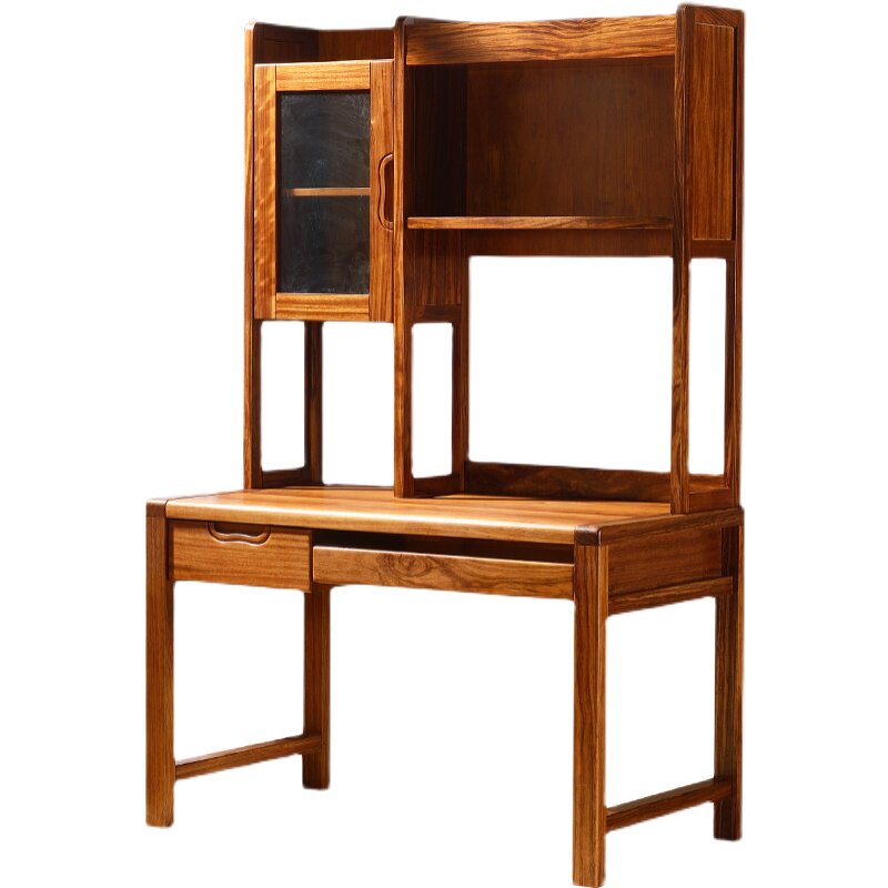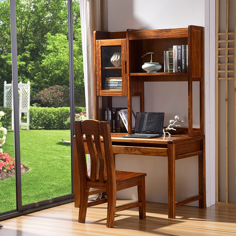 Bookshelf (on) desk (on the keyboard) chair desk (down drawer) desk (down keyboard) shelf desk (down drawer) shelf