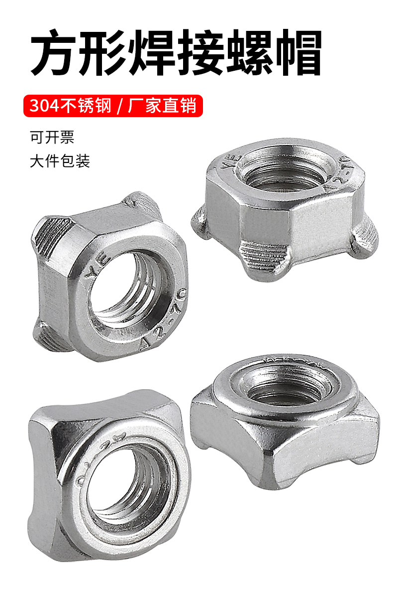 304 stainless steel square welding nut square welding nut square spot welding screw cap M4M5M6M8M10