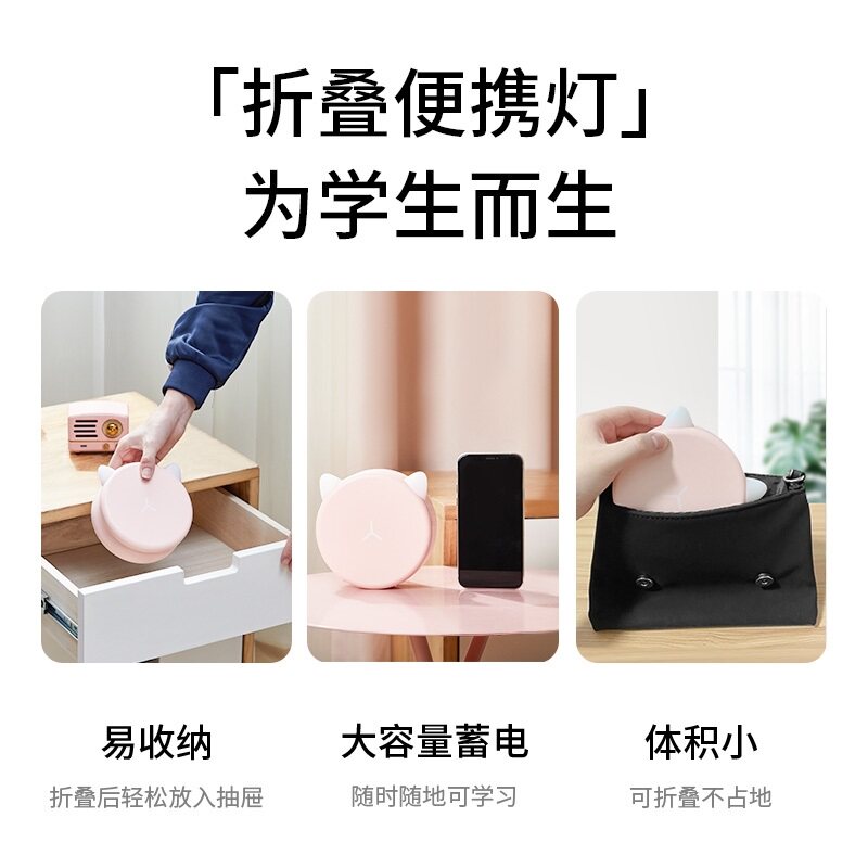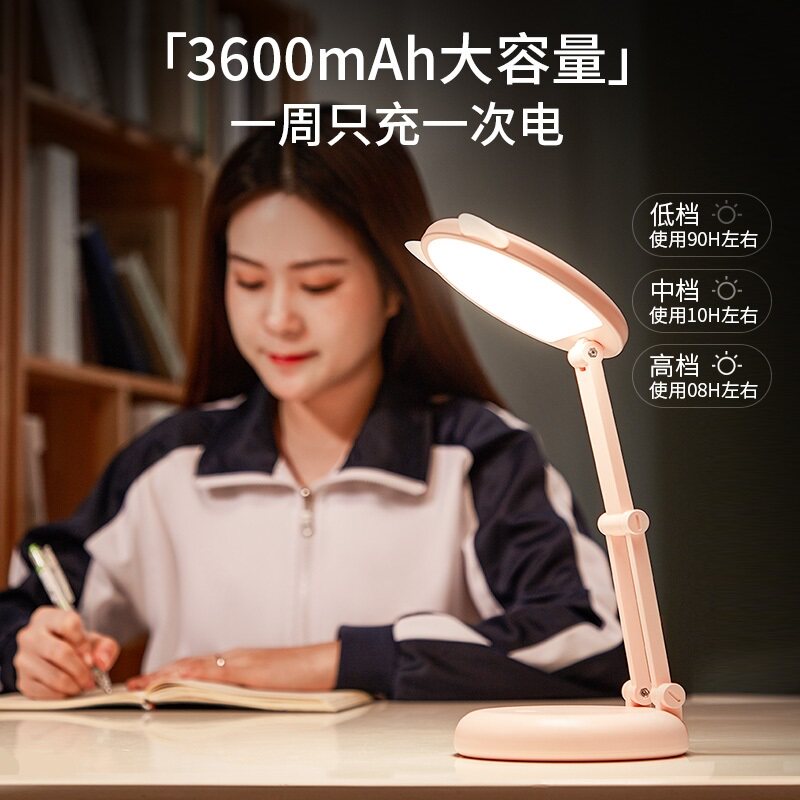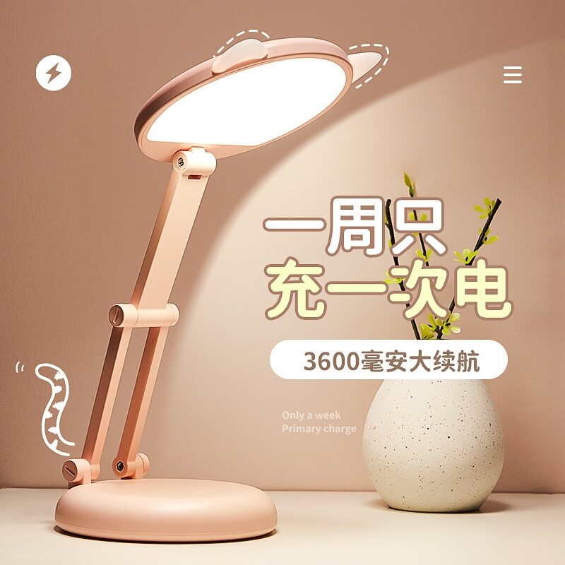 Small Table Light Eye Protection Desk Student Dormitory Bedside Study Dedicated Girl Charge Plug-in Dual Purpose Folding Portable Fold