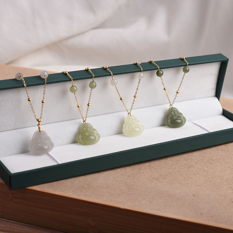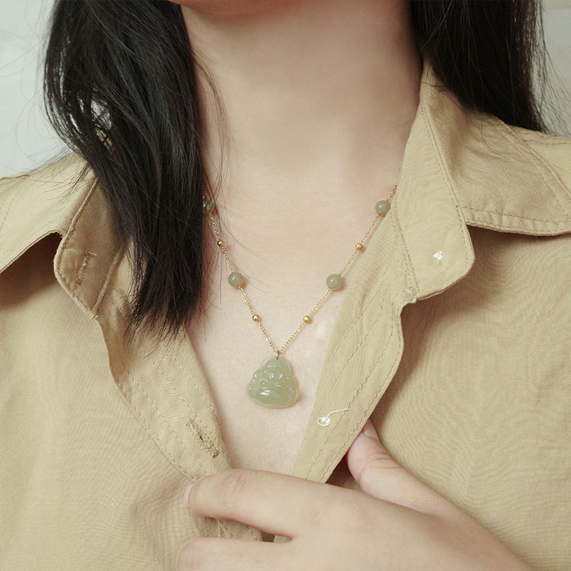 Hetian Yuqing water Buddha Gong pendant female summer 14k wrapped gold full of stars collarbone chain necklace high sense 2021 design