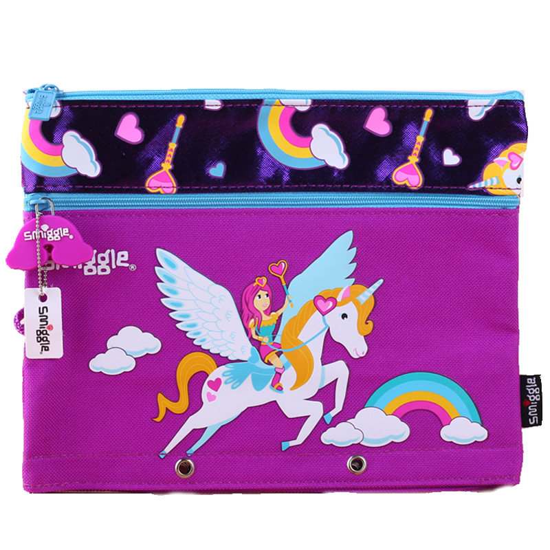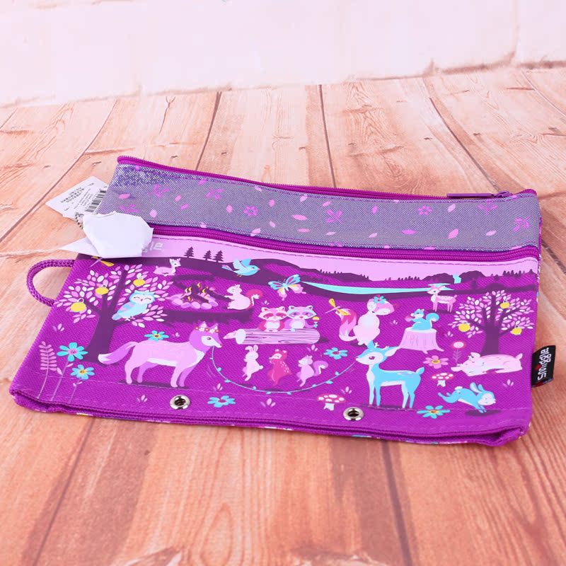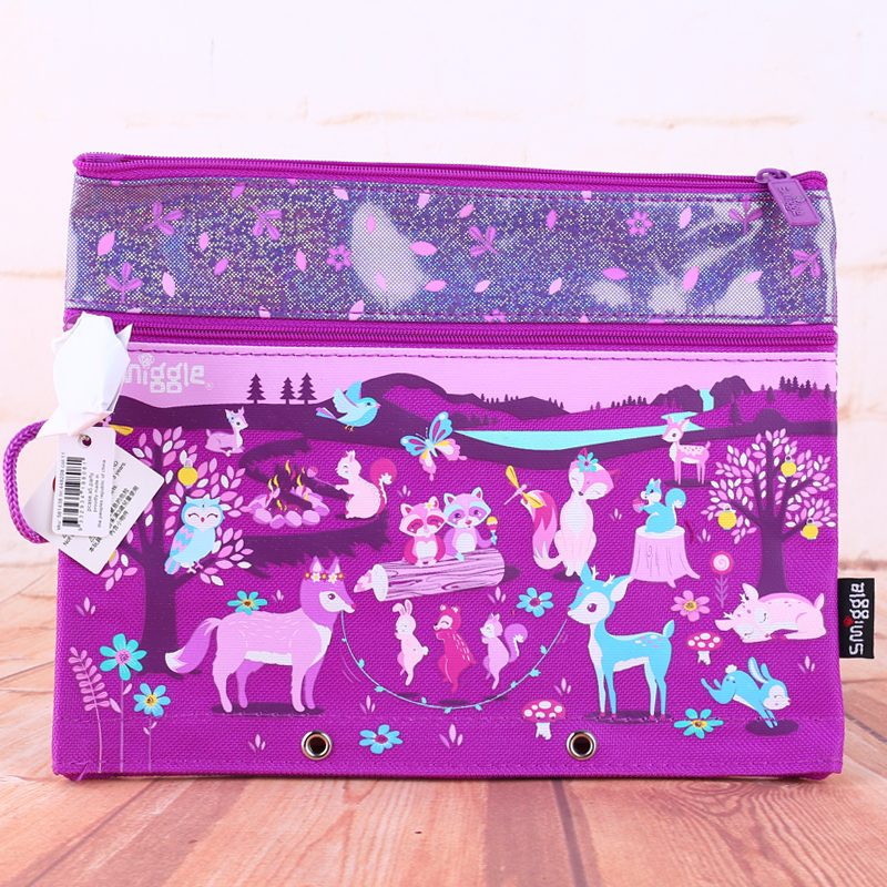 Australian smiggle stationery student double zipper portable pencil bag purple animal rally tutoring bag six one children