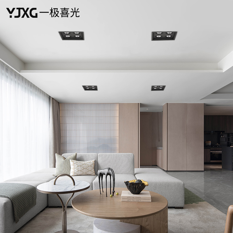 No main light living room lighting four-head bold light LED spotlight embedded suspended ceiling cob square spotlight grille light