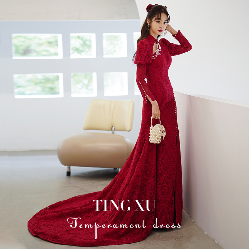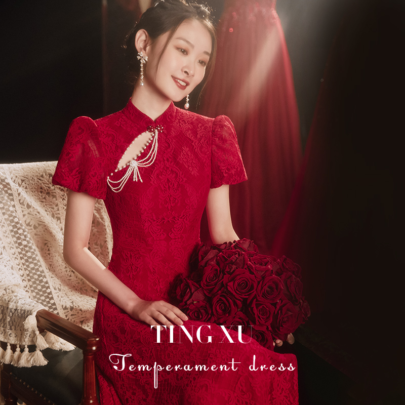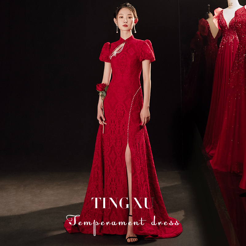 Toast Dress Qipao Young Gown Dress Lady Spring Summer 2022 New Bridal Engagement Foreign Dress Chinese Retro Temperament