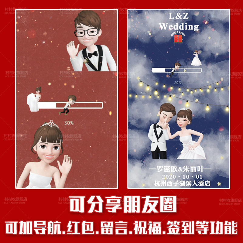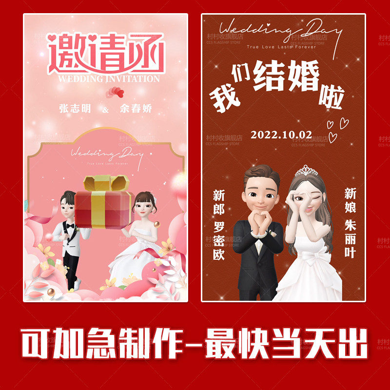 2022 Little Red Book Shaky Kitty DiY Wedding Invitation Electronic Cartoon Wedding Invitation Letter Romantic