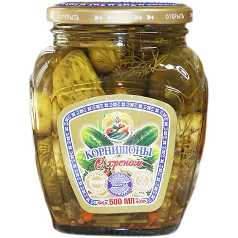 Russian-style sour cucumber small cucumber cans imported from Russia canned ready-to-eat authentic burgers with pickles pickled