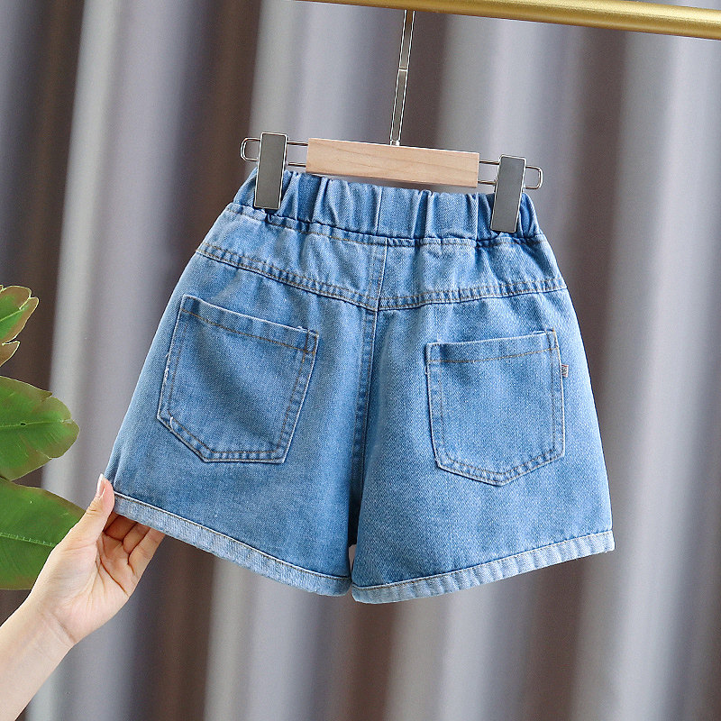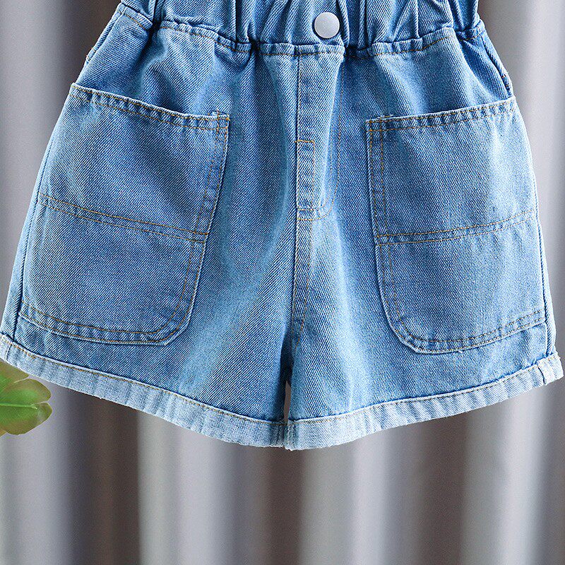 Blue (if you are not fat, choose a half size larger) White heart T-shirt, large pocket denim shorts, pink heart T-shirt, large pocket denim shorts, white heart T, large pocket shorts, black heart T, large