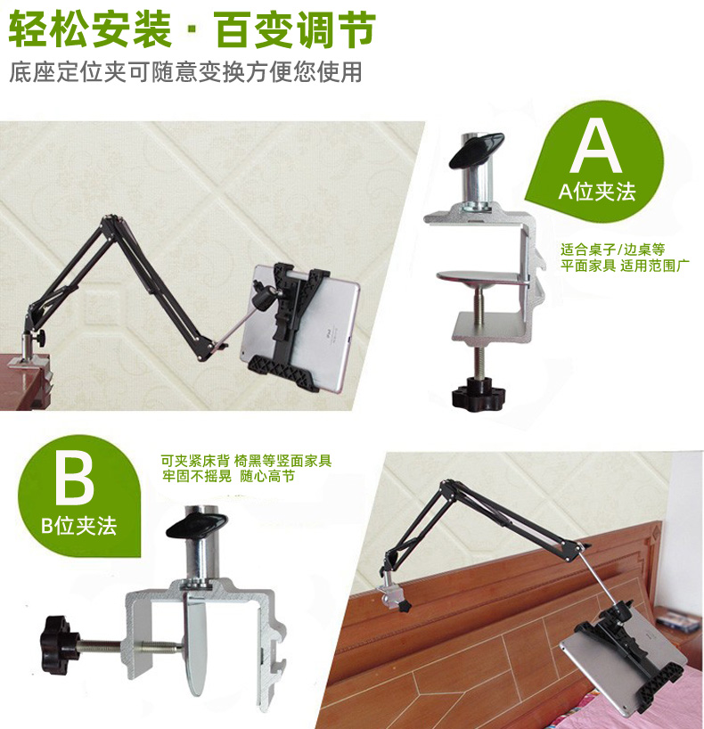Lazy mobile phone rack home iPad tablet computer universal shelf bedside bed desktop mobile phone rack clip live broadcast anchor shooting watching TV metal cantilever telescopic support frame
