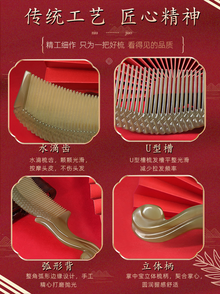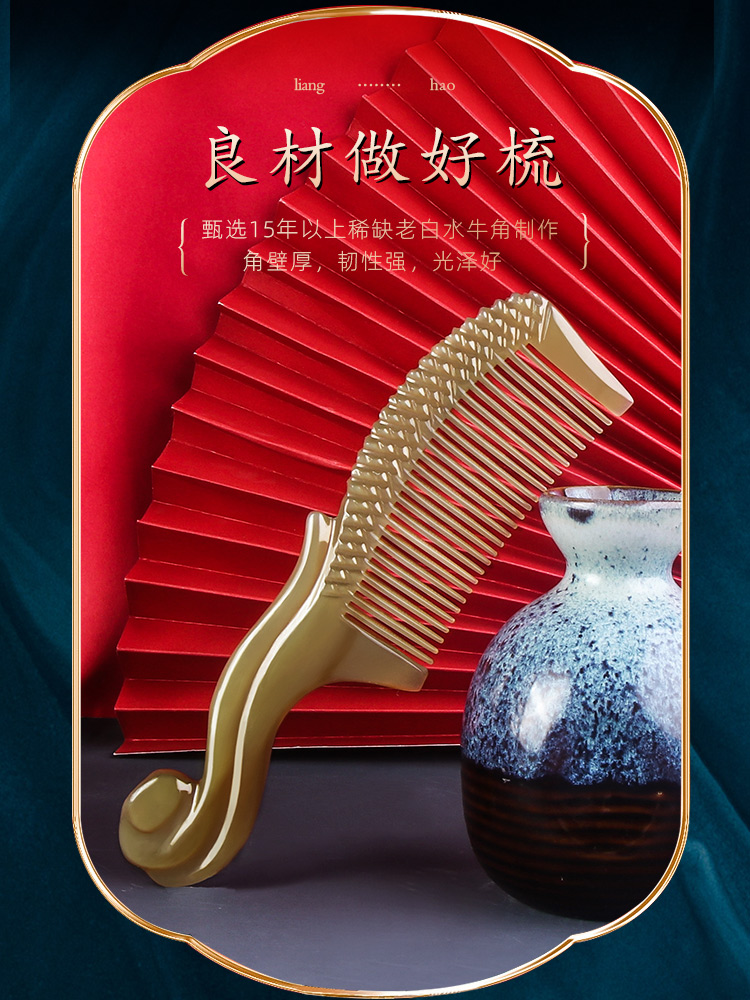 20cm thickened old white buffalo corner comb(Guangdong Gift Box Essential oil bag) 20cm thicker old white buffalo corner comb(Rose gift box Essential oil cloth bag) Old white buffalo angle set(20