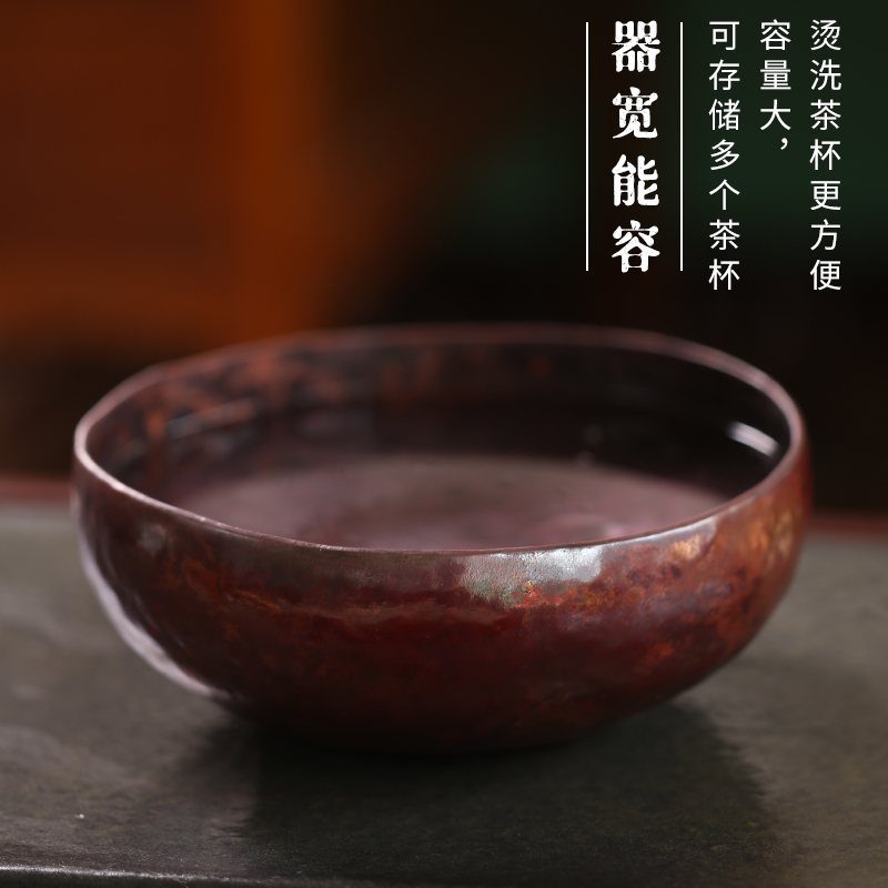 Leisure Yunya play pure copper tea wash small large hand hammer pattern wash water bowl built water wash pen wash tea bowl tea set accessories