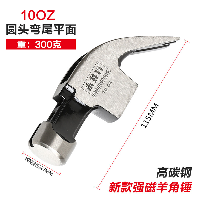 21-Claw hammer hammer piglet mark woodworking hammer hammer round square head steel hammer tool hammer handle wooden handle
