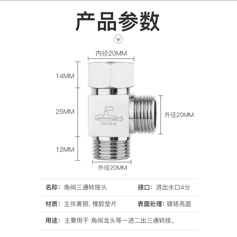 Diving boat Living up to the tee Water distributor angular valve in one-in-two out of all-copper water-stop valve tap 10%-2 joint