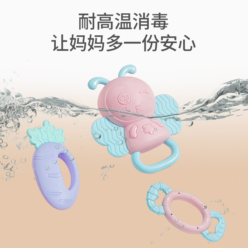 Esurrogate Hands Rocking Bell Newborn Baby Toys Puzzle Early Teach Gripping Training Solid Teeth Machine Can Bite 0-3-6 Months Baby