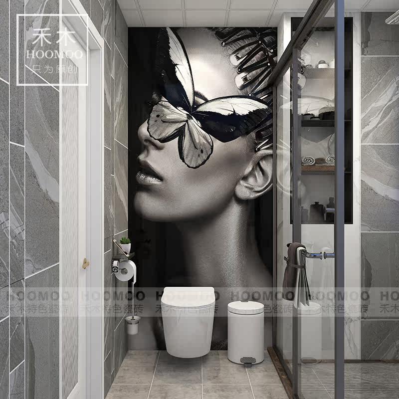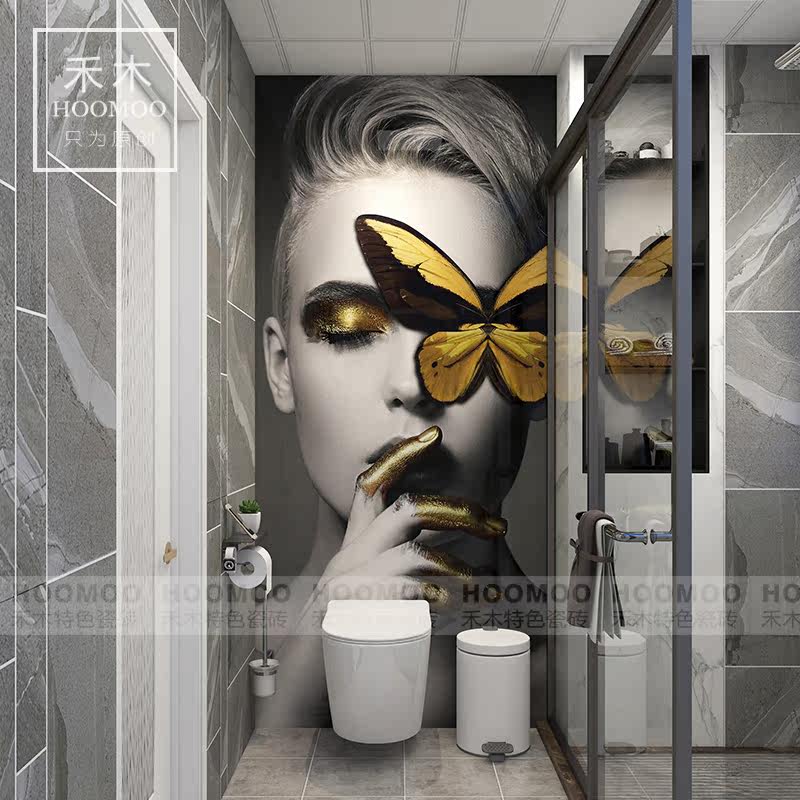 Hemu powder room bathroom toilet shower room shower toilet background wall tile modern light luxury decorative mural