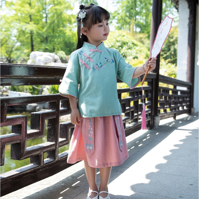 Girl Han clothes in summer clothes Chinese Wind Children ancient dress superfairy Skirt Woman baby Down with little girl Princess Skirt Suit