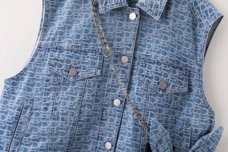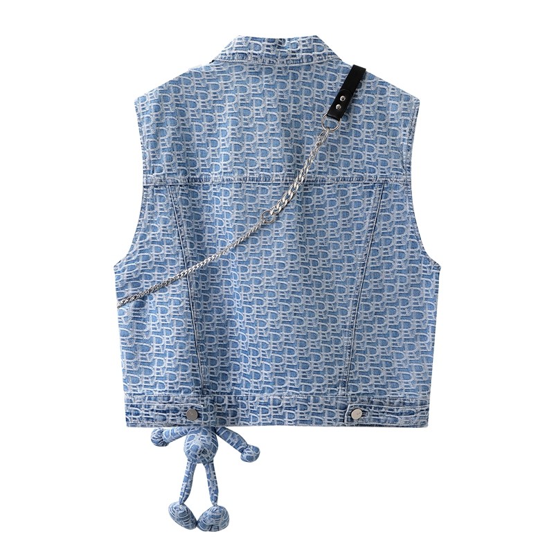 2021 spring and summer new lapel cardigan single breasted doll bag denim vest female P30701256
