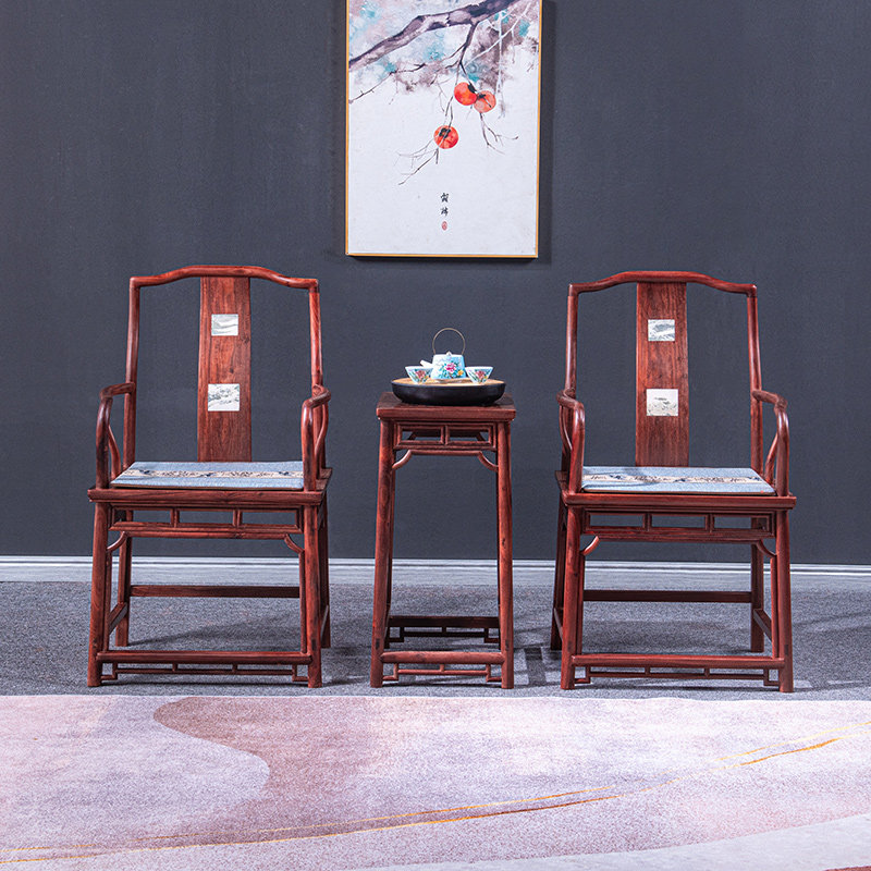 Su Ting mahogany furniture blood sandalwood chair three-piece set Ming and Qing classical Chinese all solid wood leisure chair backrest chair