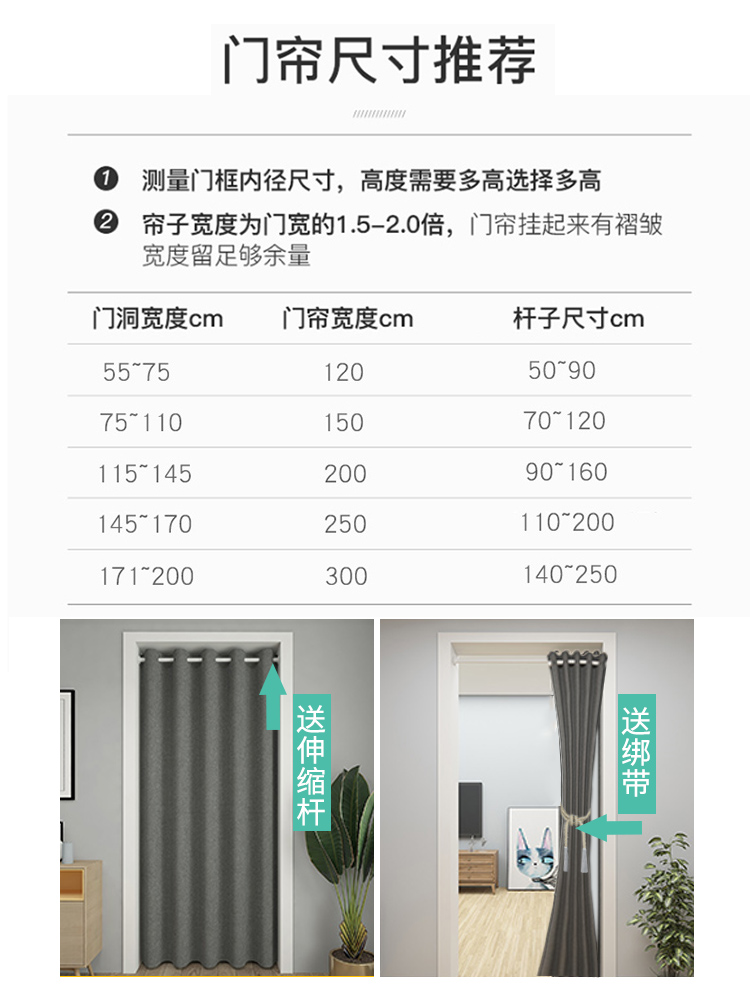 (suitable for 40-55 door width) curtain width 80* height 150 white rod 35-55 straps (suitable for 40-55 door width) curtain width 80* height 150 white rod 35-55