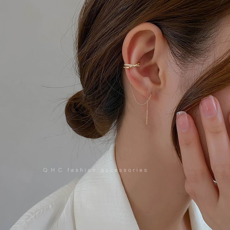 South Korea 925 silver needle minimalist chain ear osteoclavicle with female temperament supersensane high sense all-earring ear pin tide