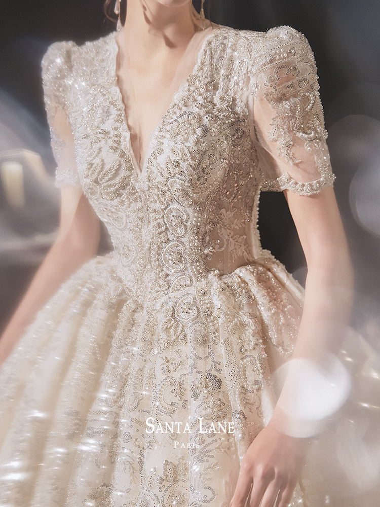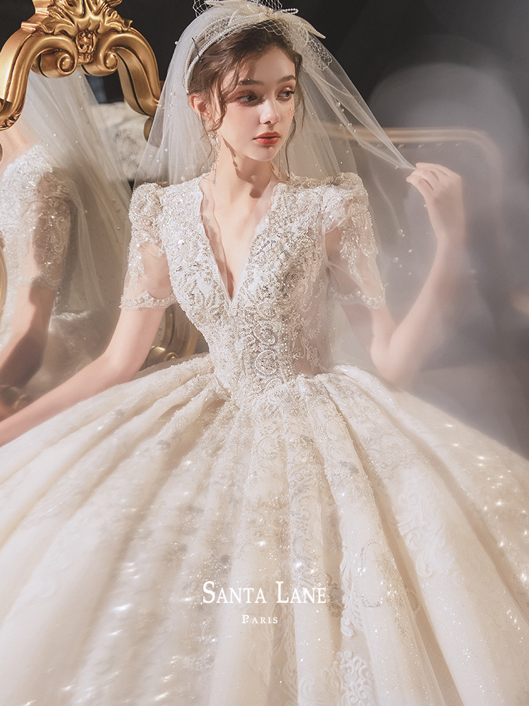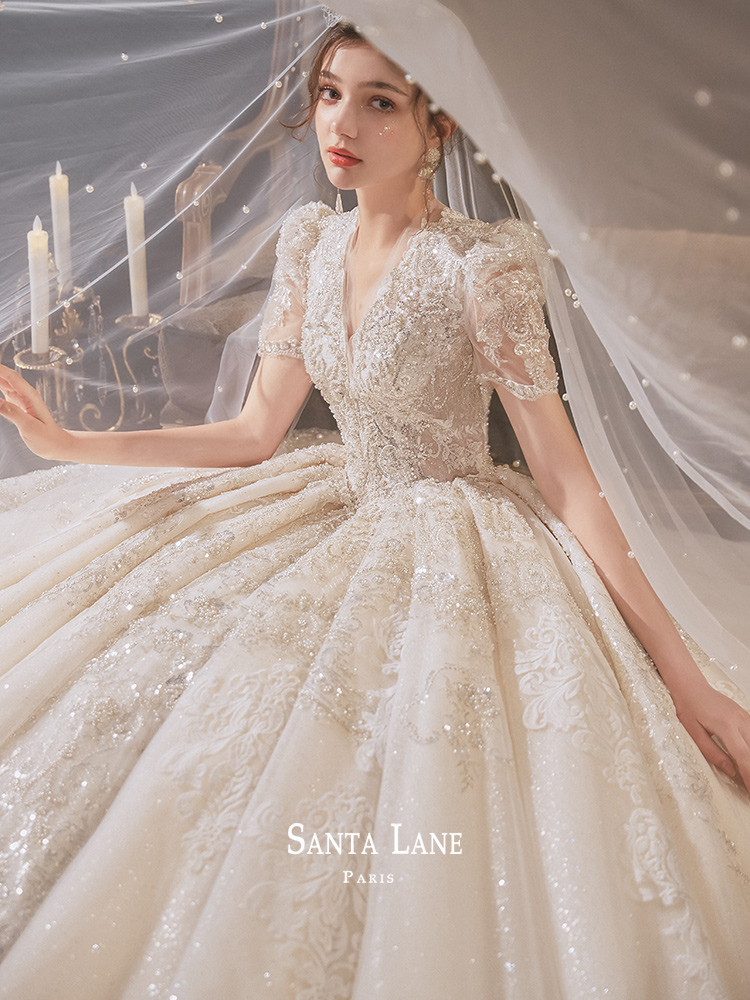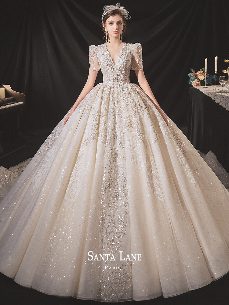 Main wedding dress 2022 new bridal style Hepburn Palace Tingwind Heavy work Extravagant Temperament Retro Princess Wind Tug Tail
