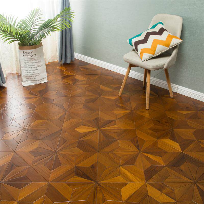 Multi - layer composite solid wood flooring household bedroom art spelling to warm Myanmar teak primary color 15mm manufacturers direct sales