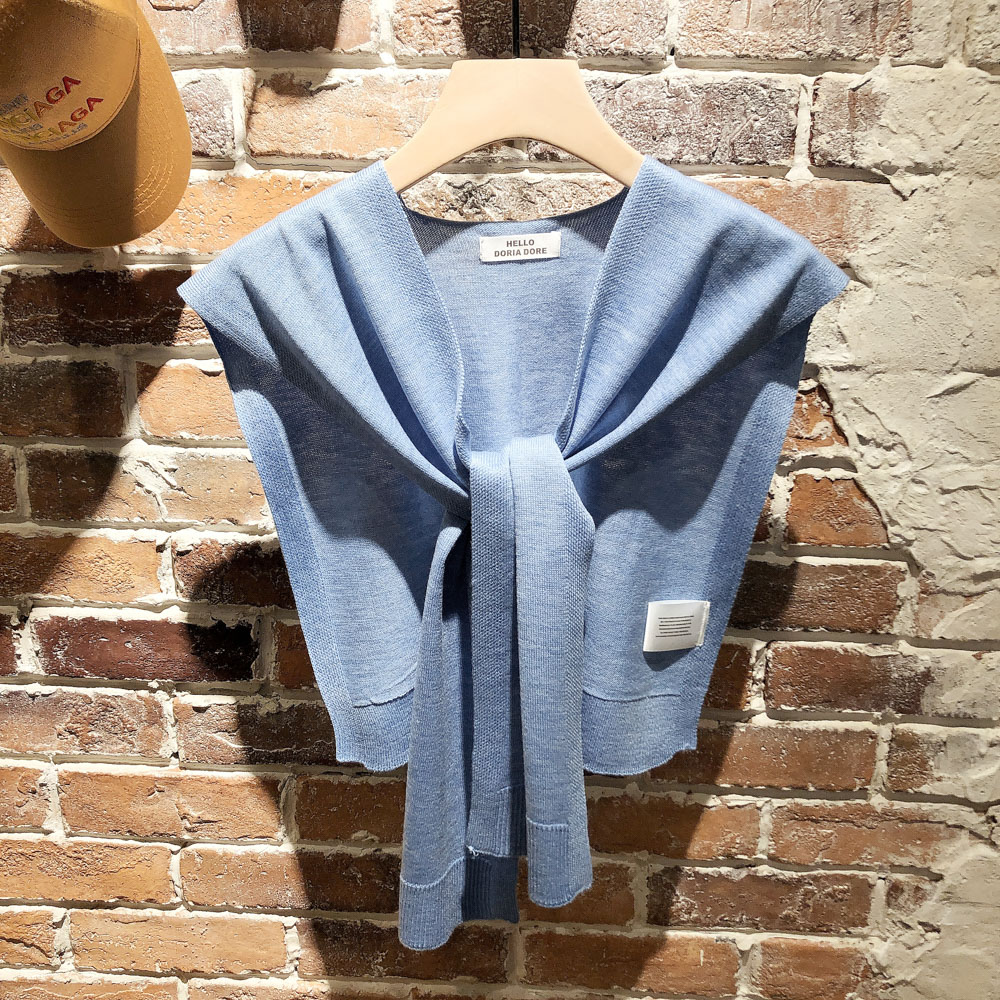 Wool blended solid color shawl with net red knotted waistcoat Korean version all-match spring and autumn summer air-conditioned room shoulder girl